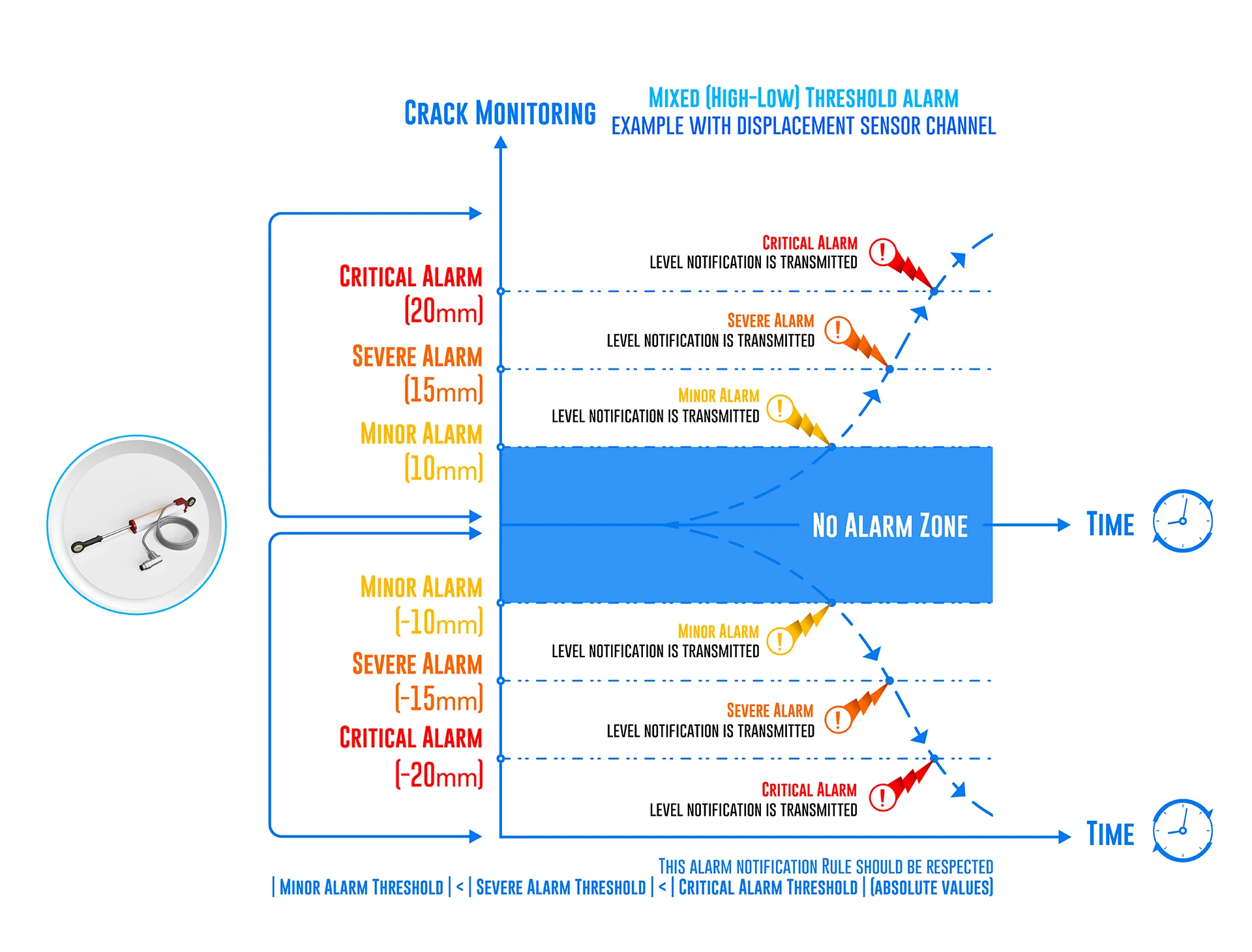 • Mixed Alarm Threshold: Triggers an alarm when a data measurement changes in two opposite directions.