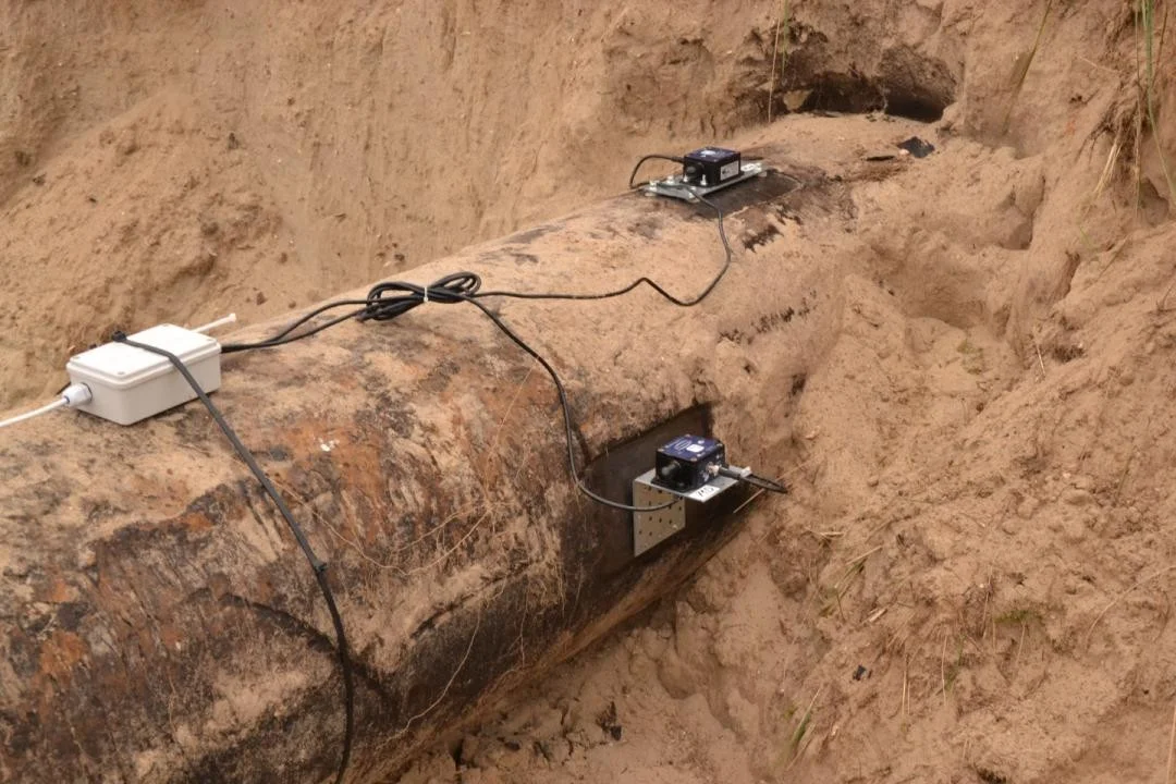 A BeanAir wireless two-axis inclinometer sensor system was used to measure the behavior of a gas pipeline pipe with a measuring range of ± 15°. The measuring accuracy of the inclinometer sensors is at least ±0.005° with the declared measurement resolution of 0.001°. The measuring repeatability ±0.003° on full Scale for ±15° version. This is high accuracy. Additionally, these sensors are dust and water resistant in the range of IP67, which allows even short-term flooding with water up to the depth of 1 m. The use of sensors resistant to dust and water in the scope of IP67 was particularly important for the area of the Olszanka reserve (western part), where despite of the lowering of water level there was still posing a real threat to the sensors. The mud did not create conditions conducive to the functioning of the equipment as well.