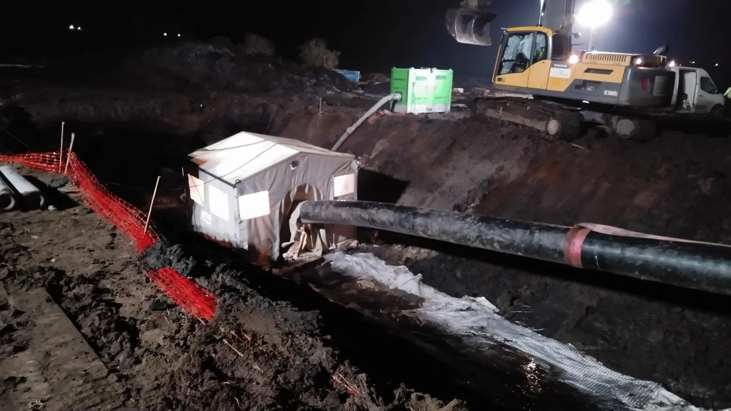After crossing Roztoka Odrzańska, completed in the form of a HDD controlled drilling in the Intersect technology, the contractor had to encounter another difficult stage - connecting the drilling to the remaining onshore line of the gas pipeline. The project presumed connecting the planned gas pipeline with the existing one through the application hermetic method (without stopping the gas flow).