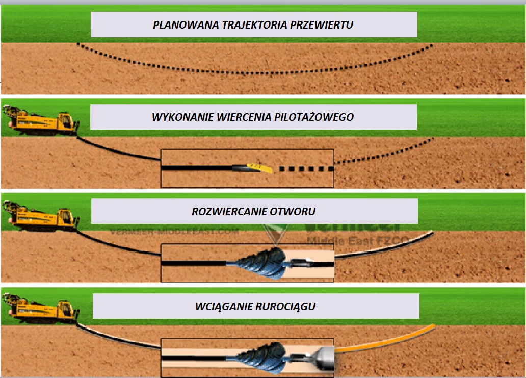 Horizontal directional drilling (HDD) is a modern technology consisting in performing horizontal directional drilling. It belongs to the group of so-called trenchless technologies. Horizontal drilling is a type of directional holes. Due to the use of modern measurement and control systems as, the course of the drilling and the location of the starting and ending points coincide with the aim of the design. This solution can be implemented in heavily armed and urbanized areas. In the case of Roztoka Odrzańska, it has been proven that this solution is also well suited to environmentally protected areas. The essential part of the installation performed using the technology of horizontal directional drilling is a casing pipe inside which the cable is pulled or the pumped medium flows (photo 4).