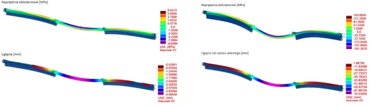 A significant elemet of further analysis was the behavior of the element, taking into account the parameters of the subsoil in the support zone for both output values (according to geotechnical research), as well as in the event of a lowering of the water level ground. The gas pipeline then began to work as an element interrupting the depression cone generated by the use of well points. The graphs (Photo 11) show the change in behavior of the gas pipeline which was initially loaded only with its own weight, and then with its own weight under changing ground conditions.