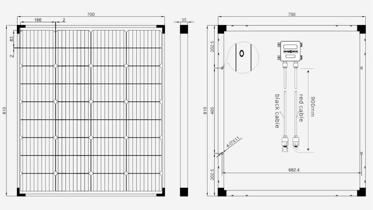 Dimensions and Weight (100W version) | 810 x 700 x 35mm, 7.8kg weight |