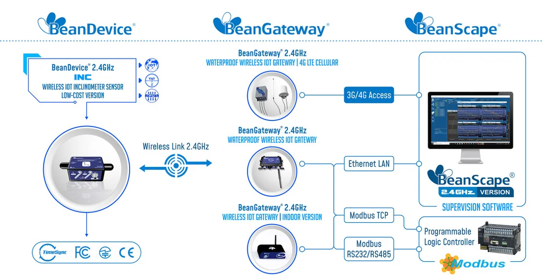 Users looking for a quick and easy integration with a third party software, have choice between ModBus TCP/RTU/ASCII protocol available on our BeanGateway® 2.4GHz