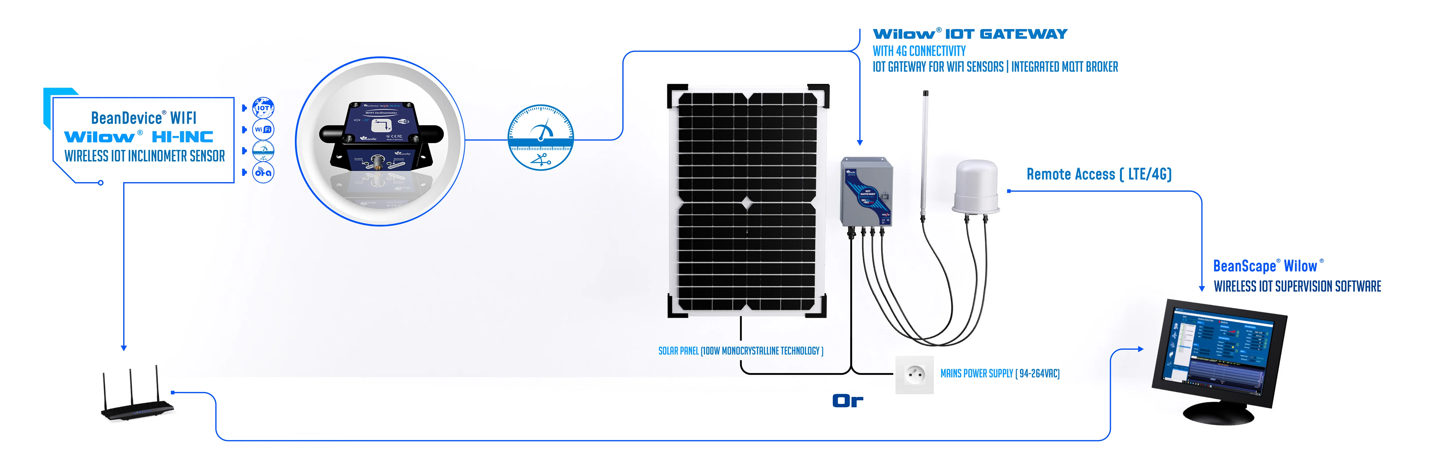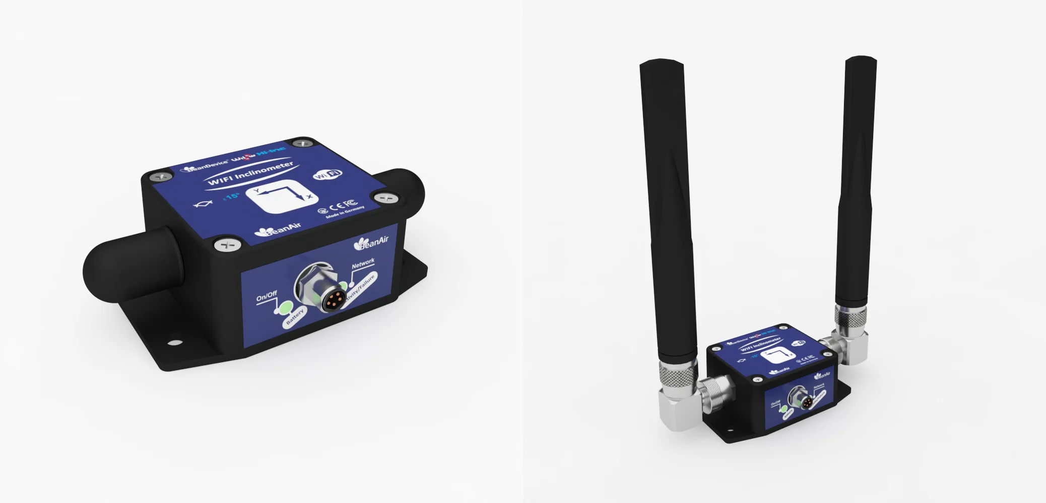 The BeanDevice® WiLow® HI-INC is an ultra-low-power (ULP), bi-axis Wi-Fi inclinometer engineered for high-precision tilt monitoring. It is available in two measurement ranges (±15° or ±30°) and features an integrated data logger to ensure reliable performance in demanding IoT applications. This robust sensor offers versatile mounting (screw or magnetic) and antenna configurations (embedded or high-gain) to suit various deployment needs. With solar energy harvesting capabilities, the WiLow® HI-INC enables autonomous, maintenance-free operation, making it the ideal solution for continuous structural and industrial tilt monitoring. | |||