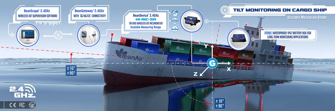 The BeanDevice® HI-INC SR is a high-performance wireless trix-axis inclinometer designed with a scalable measuring range (±10° and ±90°, with automatic range adjustment depending on the application). It provides exceptional precision, offering accuracy of up to ±0.01° for the ±10° range and ±0.02° for the ±90° range. Additionally, it incorporates a built-in temperature sensor, located at the device’s base, to monitor the temperature of your equipment or structure. | |||
