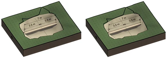 For structural monitoring of exposed fragments threads of the existing gas pipeline, the operating conditions of which were to be changed, geometric models of these sections were built along with a part of the adjoining ground. This was to allow constant analysis using the numerical finite element method of the work of these elements and verifying the generated values of stresses and deformations. Taking into account the adjoining fragments of the subsoil was to model conditions as closely resemebling reality as possible. The actual measurement of the behavior of the gas pipeline was controlled by a system of bi-directional inclinometers working in online mode (on an ongoing basis, with the frequency of measurements every 5 s). Photo. 8 shows the excavation model for the western side (grey colour marks peat leyers) and for the eastern side (yellow colour marks the sand).